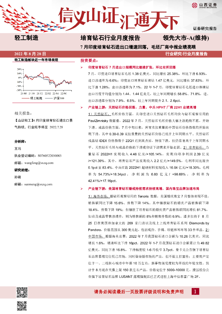 山西证券:培育钻石行业月度报告:7月印度培育钻石进出口增速回落,毛坯厂商中报业绩亮眼.pdf