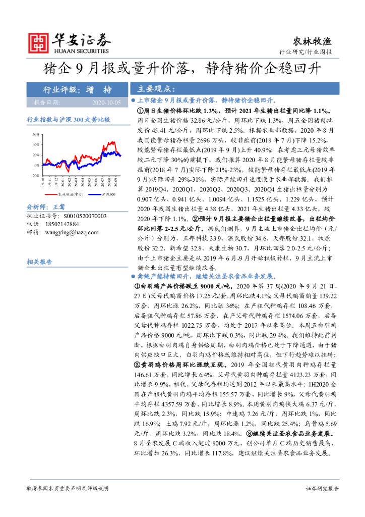 华安证券:农林牧渔行业周报:猪企9月报或量升价落,静待猪价企稳回升.pdf