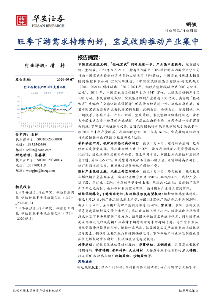 华安证券:钢铁行业周报:旺季下游需求持续向好,宝武收购推动产业集中.pdf