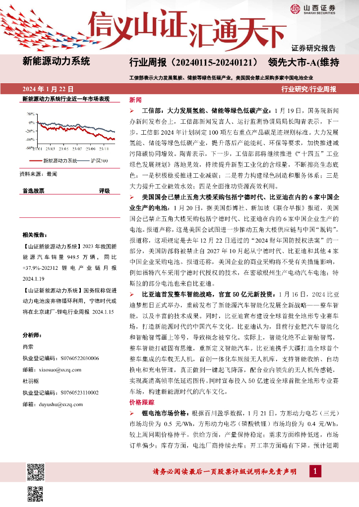 山西证券:新能源动力系统行业周报:工信部表示大力发展氢能、储能等绿色低碳产业,美国国会禁止采购多家中国电池企业.pdf