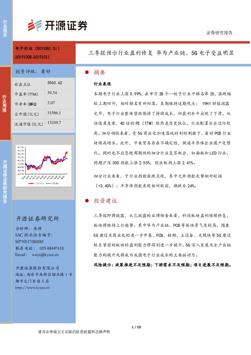 开源证券:电子行业周报:三季报预示行业盈利修复 华为产业链、5G电子受益明显.pdf
