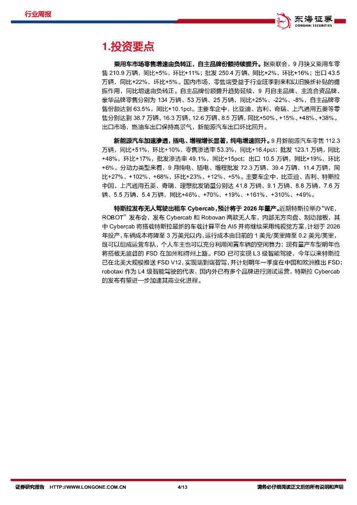 东海证券:汽车行业周报:乘用车零售增速转正,特斯拉Cybercab正式发布.pdf