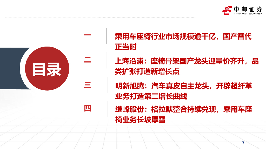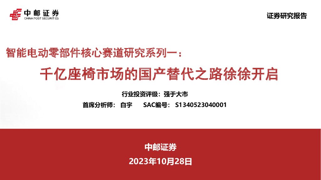 中邮证券:智能电动零部件核心赛道研究系列一:千亿座椅市场的国产替代之路徐徐开启.pdf