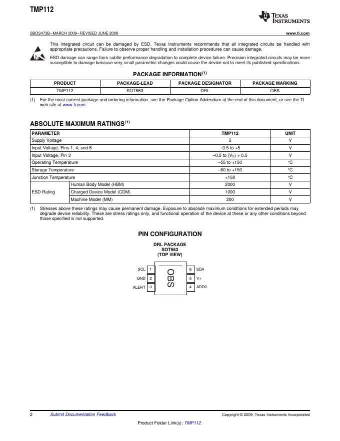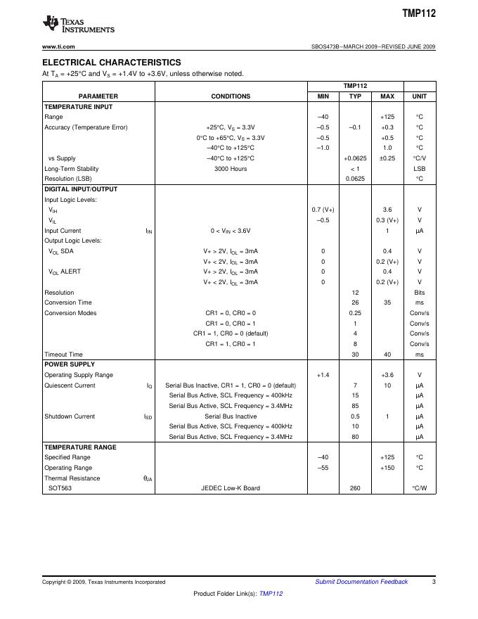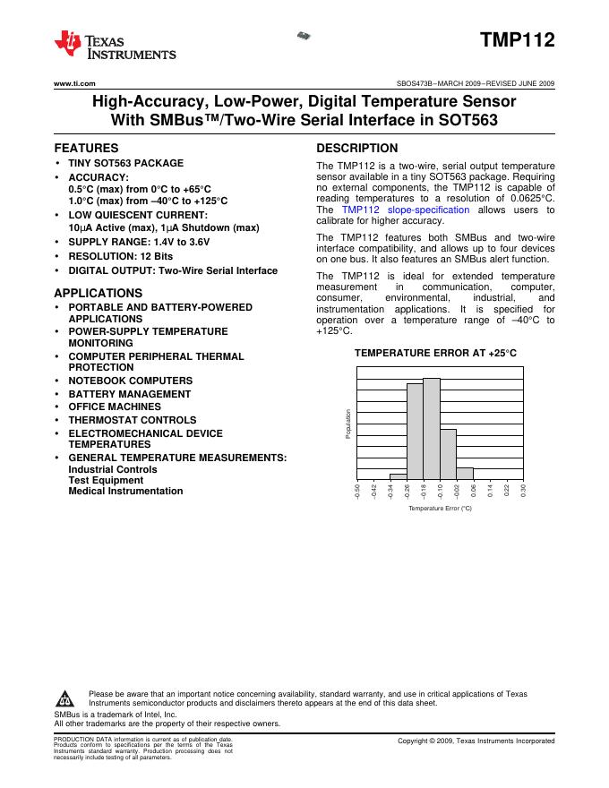 TEXAS INSTRUMENTS TMP112 Digital Temperature Sensor 数据手册.pdf