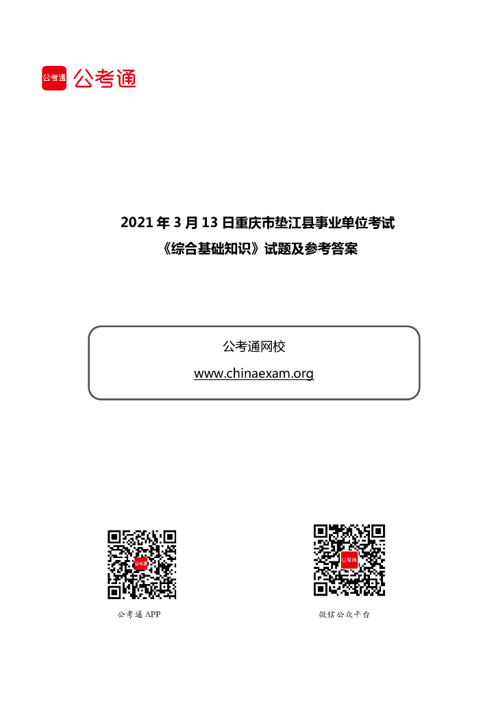 2021年3月13日重庆市垫江县事业单位考试《综合基础知识》试题.pdf