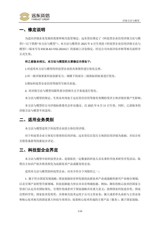远东资信:科技型企业信用评级方法与模型(FECR-KJ-V03-202505).pdf