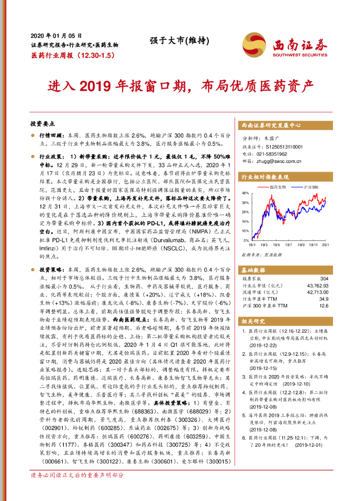 西南证券:医药行业周报:进入2019年报窗口期,布局优质医药资产.pdf