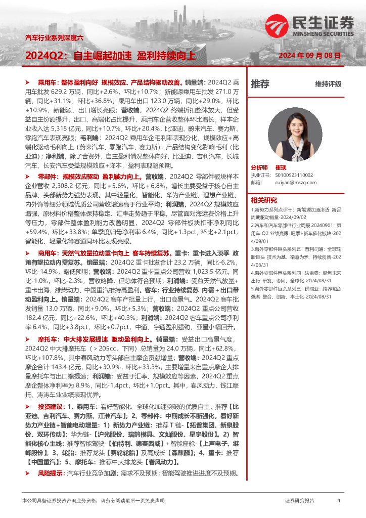 民生证券:汽车行业系列深度六:2024Q2:自主崛起加速盈利持续向上.pdf