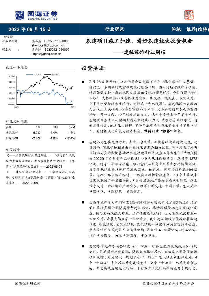 国海证券:建筑装饰行业周报:基建项目施工加速,看好基建板块投资机会.pdf
