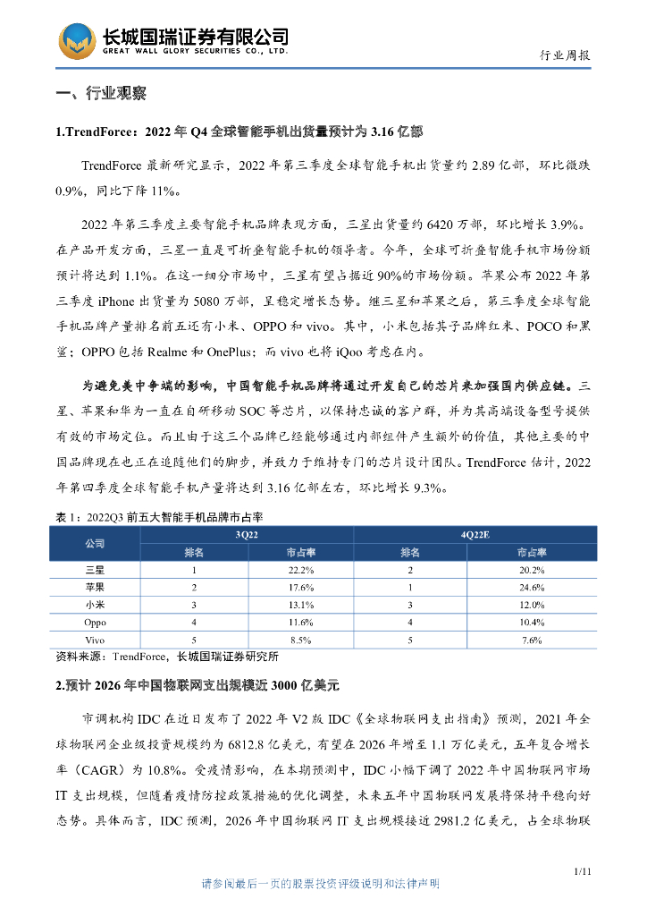 长城国瑞证券:电子行业双周报2023年第1期总第15期:台积电宣布3纳米芯片量产 折叠屏手机市场竞争加剧.pdf