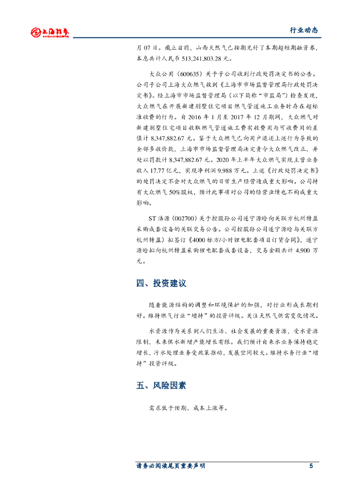 上海证券:燃气水务行业周报:天津降低天然气发电上网电价和大工业电价.pdf