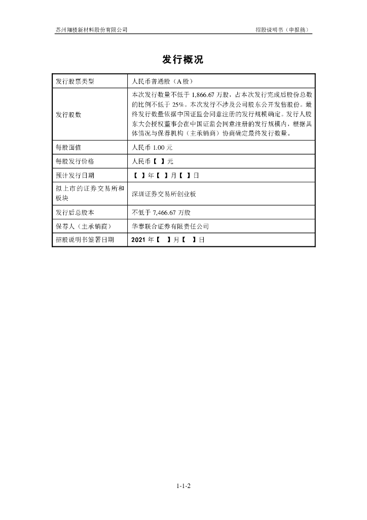 苏州翔楼新材料股份有限公司深交所创业板IPO上市招股说明书.pdf