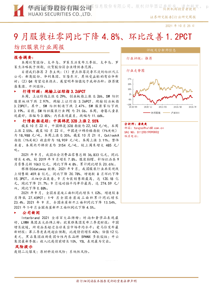 华西证券:纺织服装行业周报:9月服装社零同比下降4.8%、环比改善1.2PCT.pdf