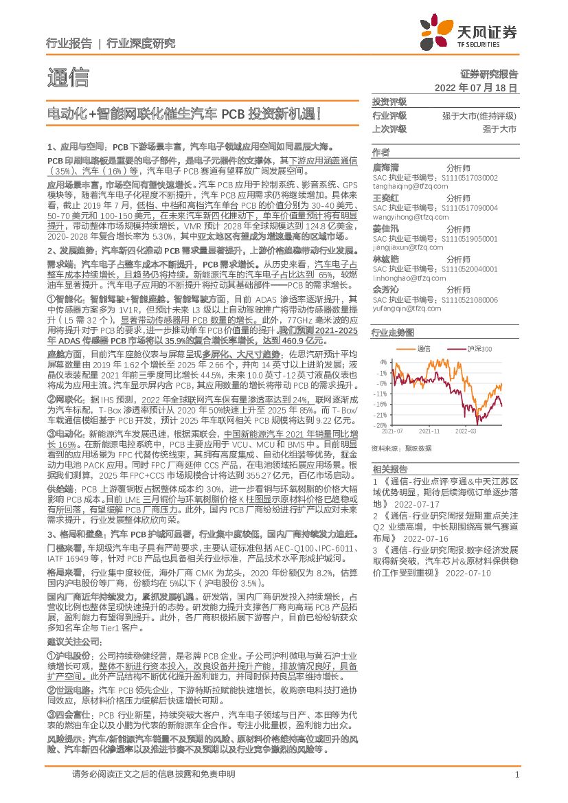 天风证券:通信行业深度研究:电动化+智能网联化催生汽车PCB投资新机遇!.pdf
