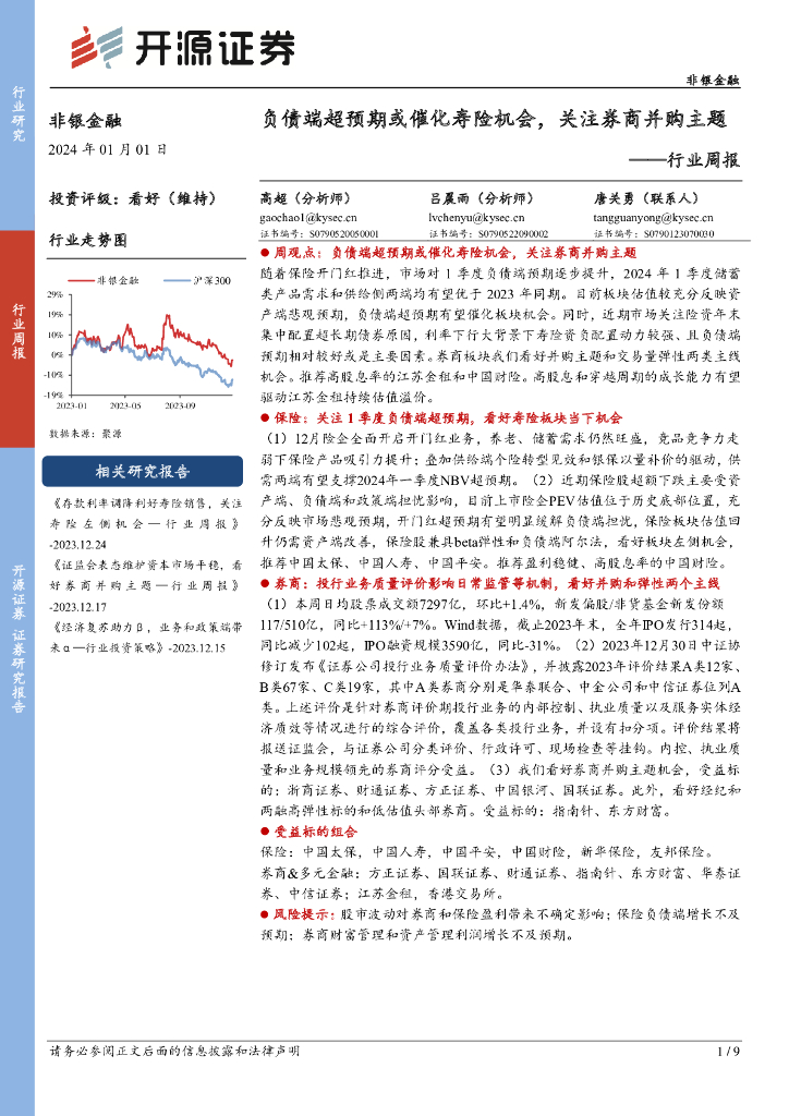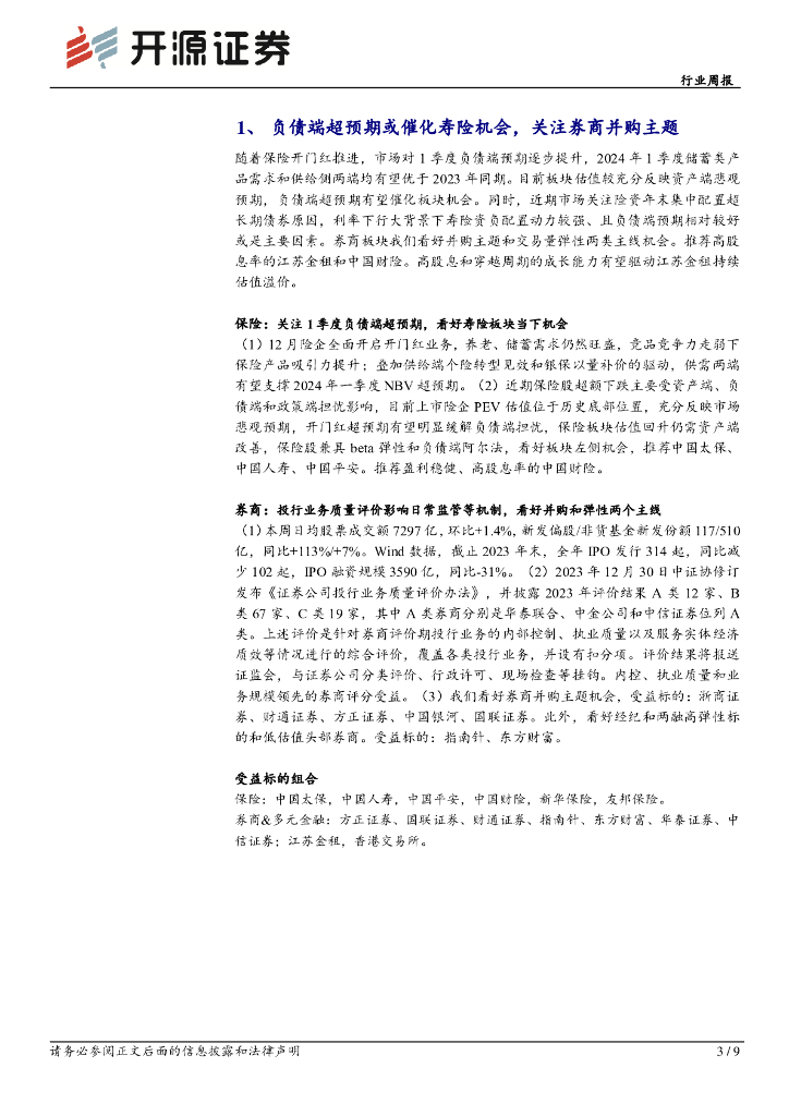 开源证券:非银金融行业周报:负债端超预期或催化寿险机会,关注券商并购主题.pdf
