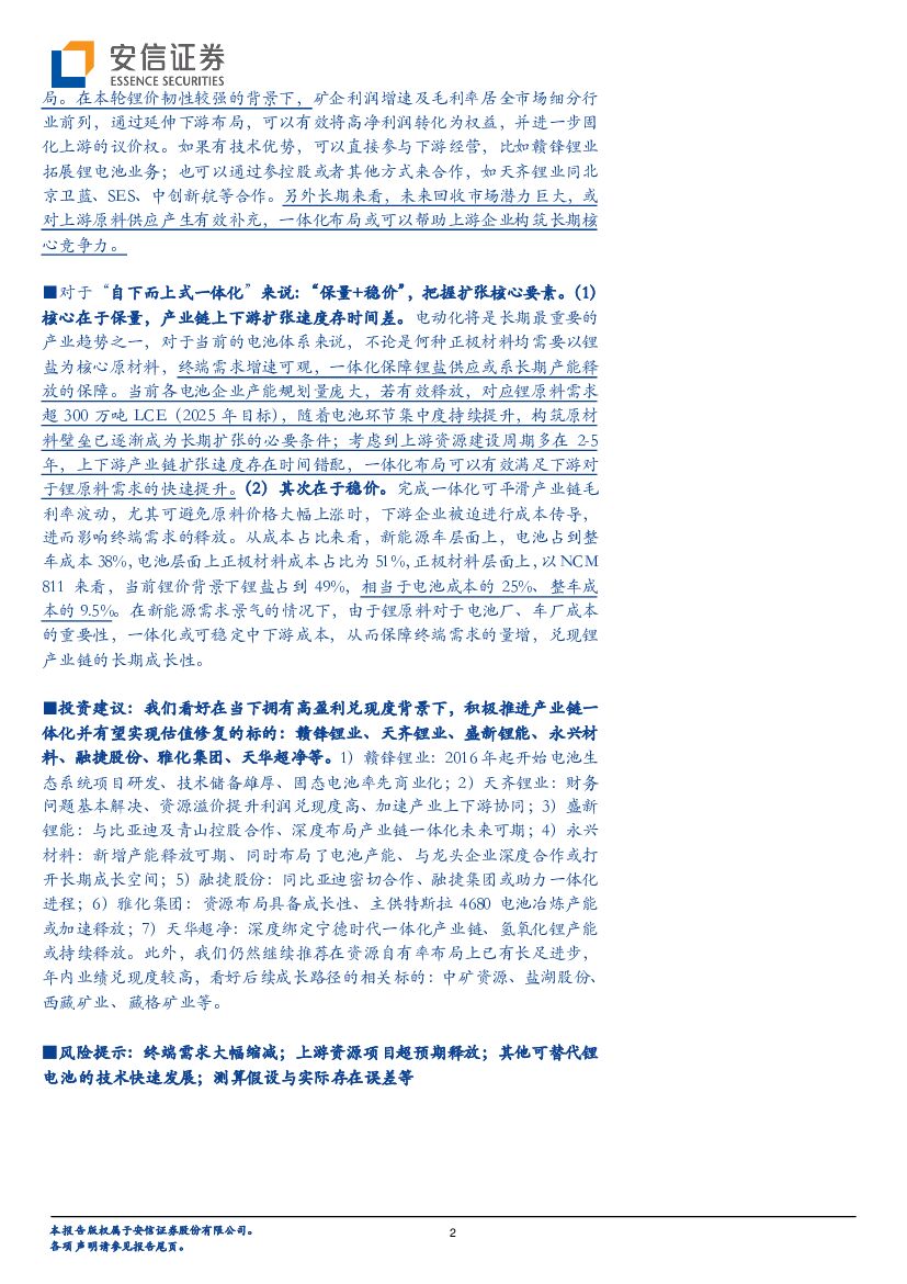 安信证券:有色金属:合纵连横系列深度:深度剖析锂产业链一体化布局.pdf