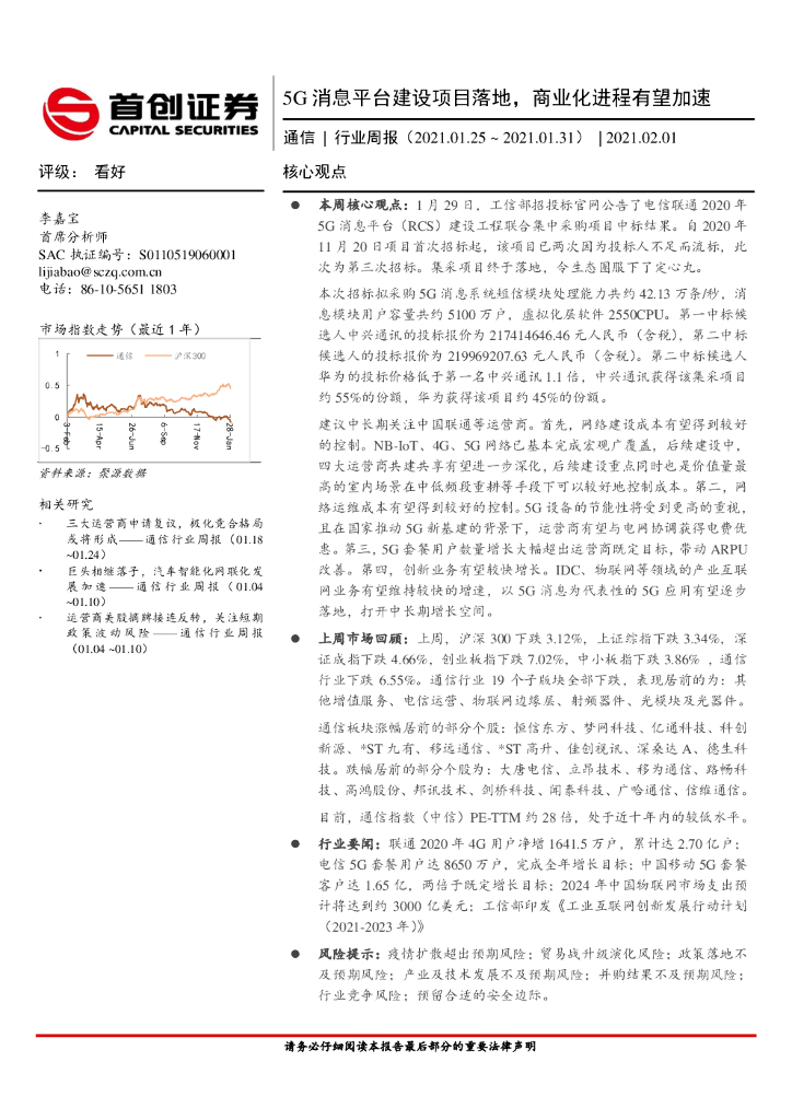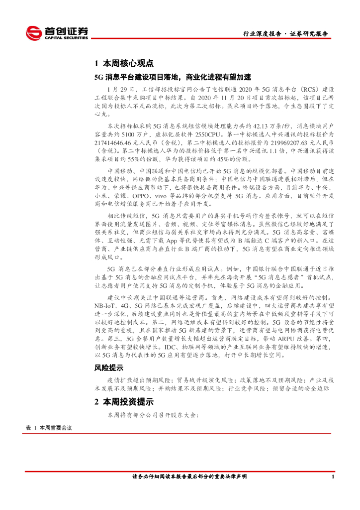 首创证券:通信行业周报:5G消息平台建设项目落地,商业化进程有望加速.pdf