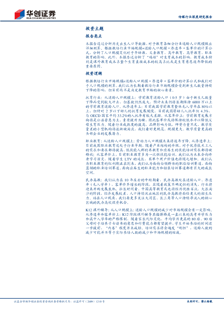 华创证券:教育与人口专题研究,人口不是对教育行业悲观的理由.pdf
