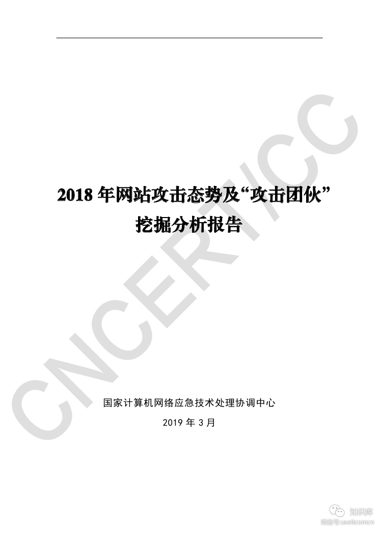 CNCERT:2018年网站攻击态势及“攻击团伙”挖掘报告.pdf