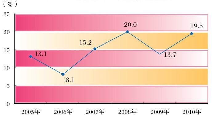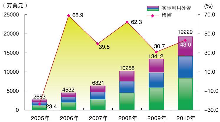 图8“十一五”时期实际利用外资额及增幅