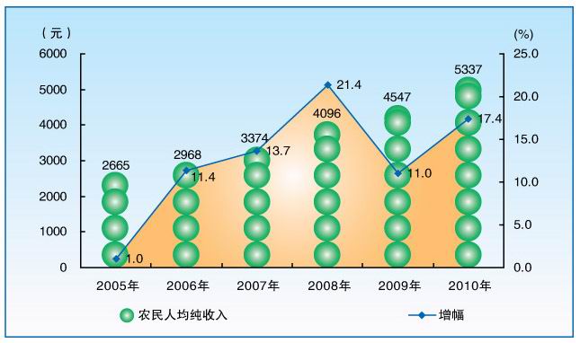 图11“十一五”时期农民人均纯收入及增幅