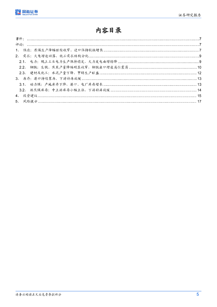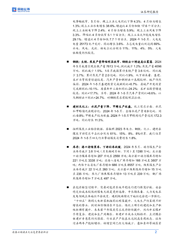 国海证券:5月煤炭供需数据全面解读:原煤生产降幅继续收窄,规上工业电力生产保持稳定,火力发电由增转降.pdf