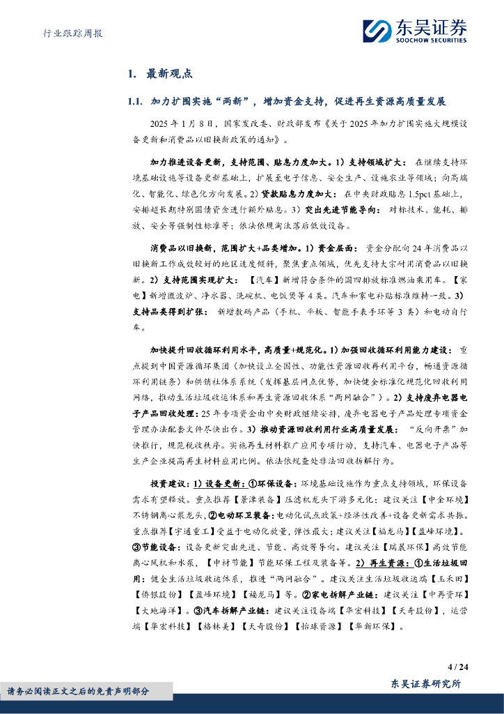 东吴证券:环保行业跟踪周报:加力扩围实施“两新”,促再生资源高质量发展,持续关注水务固废现金流资产.pdf