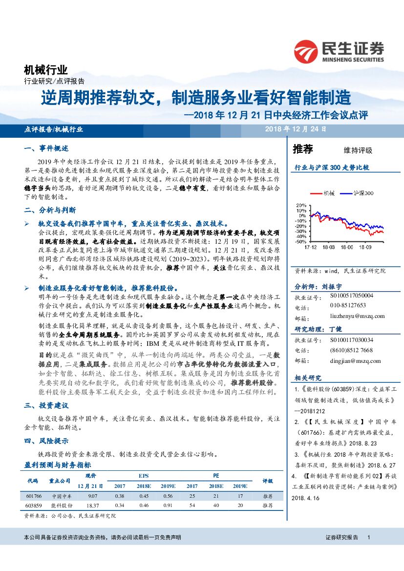 民生证券:2018年12月21日中央经济工作会议点评:逆周期推荐轨交,制造服务业看好智能制造.pdf