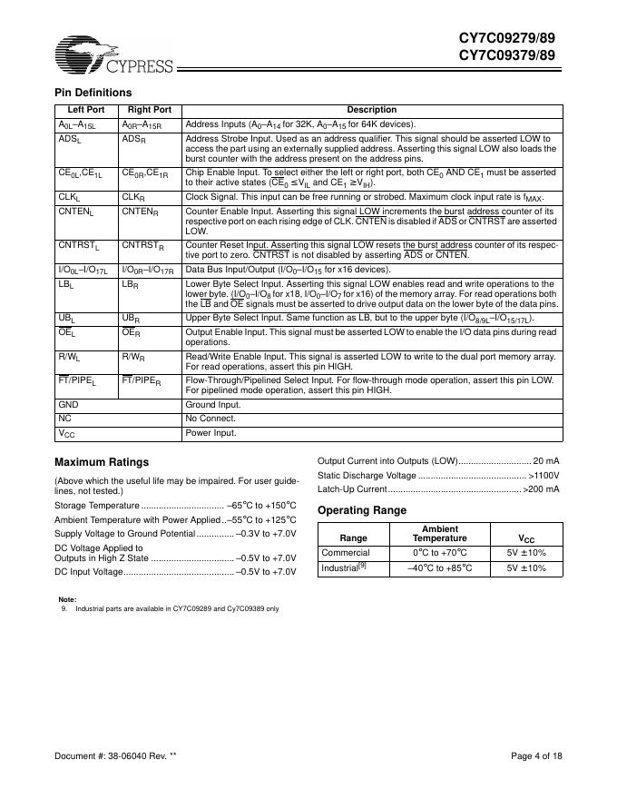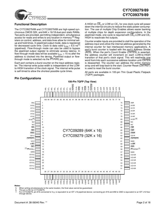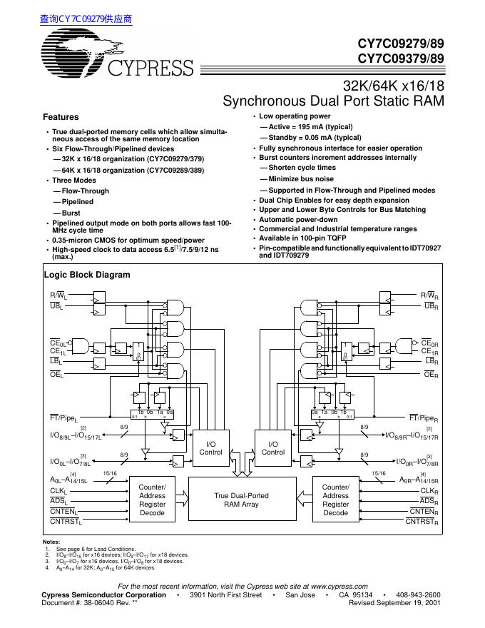 CYPRESS CY7C09279/89 CY7C09379/89 32K/64K x16/18 Synchronous Dual Port Static RAM 数据手册.pdf