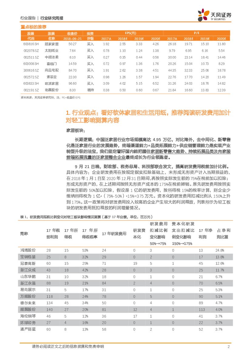 天风证券:轻工制造行业研究周报:看好软体家居和生活用纸,推荐阅读研发费用加计对轻工影响测算内容.pdf
