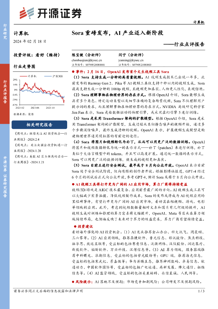 开源证券:计算机行业点评报告:Sora重磅发布,AI产业迈入新阶段.pdf