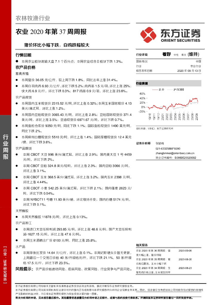 东方证券:农业2020年第37周周报:猪价环比小幅下跌,白鸡跌幅较大.pdf
