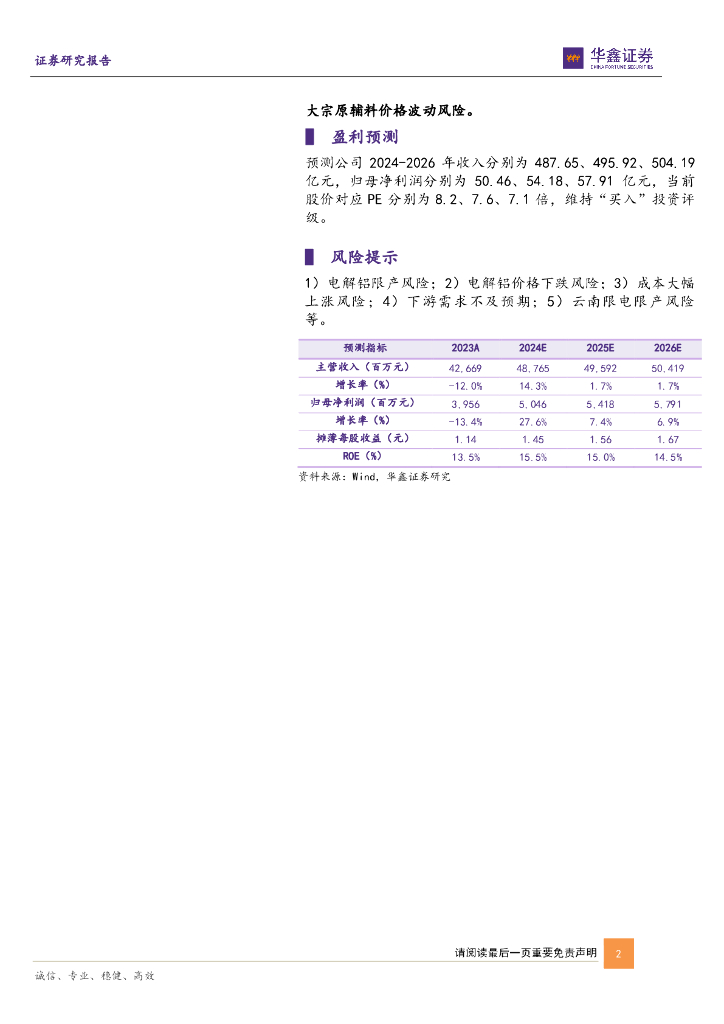 华鑫证券:云铝股份(000807)-公司事件点评报告:2024H1公司利润大幅增长,主因铝产品量价提升.pdf