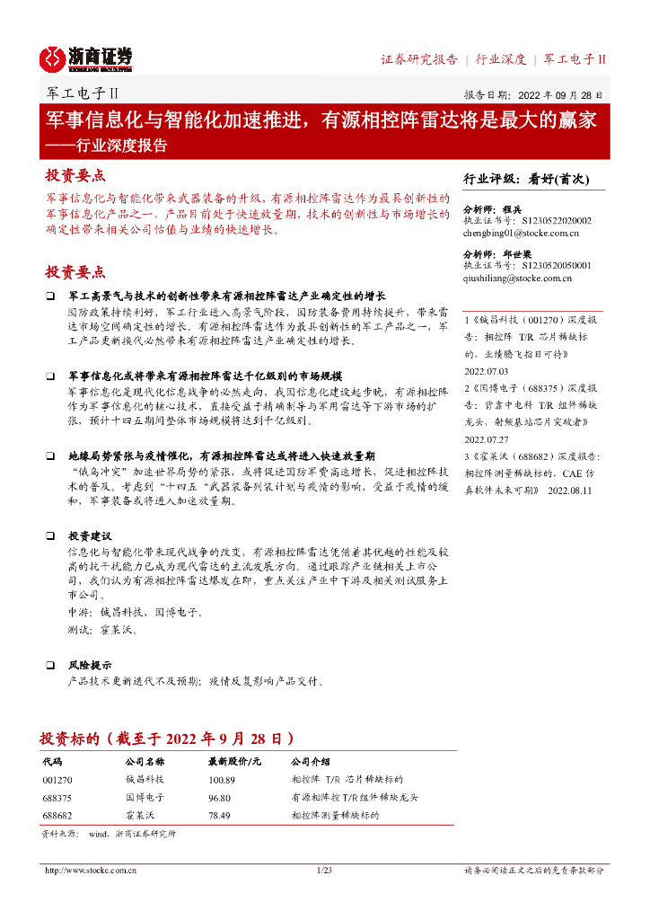 浙商证券:军工电子Ⅱ行业深度报告:军事信息化与智能化加速推进,有源相控阵雷达将是最大的赢家.pdf