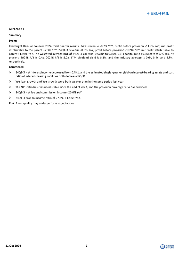 海通国际:24Q3光大银行业绩点评:净息差仍承压,贷款存款增长逊于去年同期.pdf