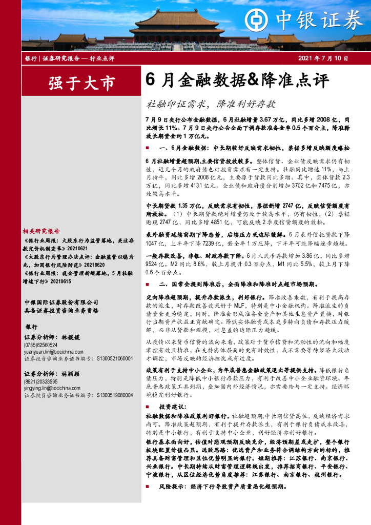 中银证券:6月金融数据&降准点评:社融印证需求,降准利好存款.pdf