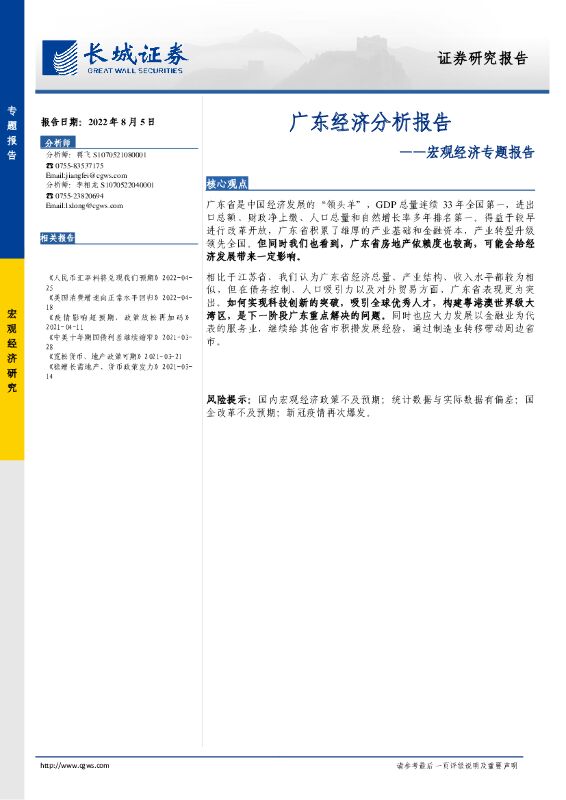 长城证券:宏观经济专题报告:广东经济分析报告.pdf