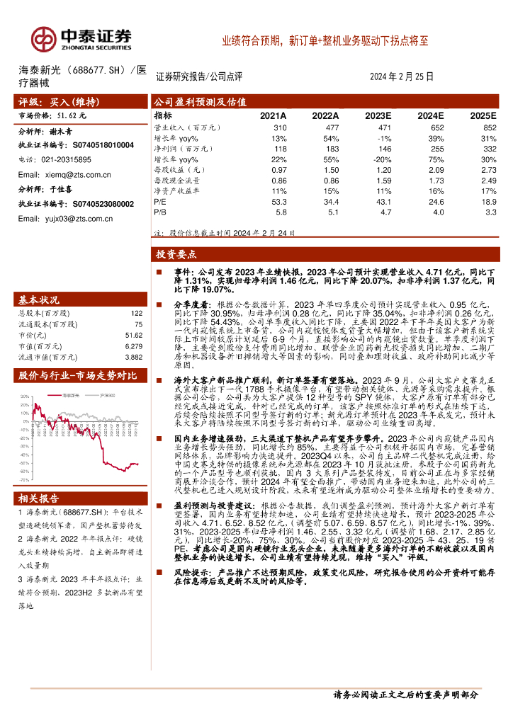 中泰证券:海泰新光(688677)-业绩符合预期,新订单+整机业务驱动下拐点将至.pdf