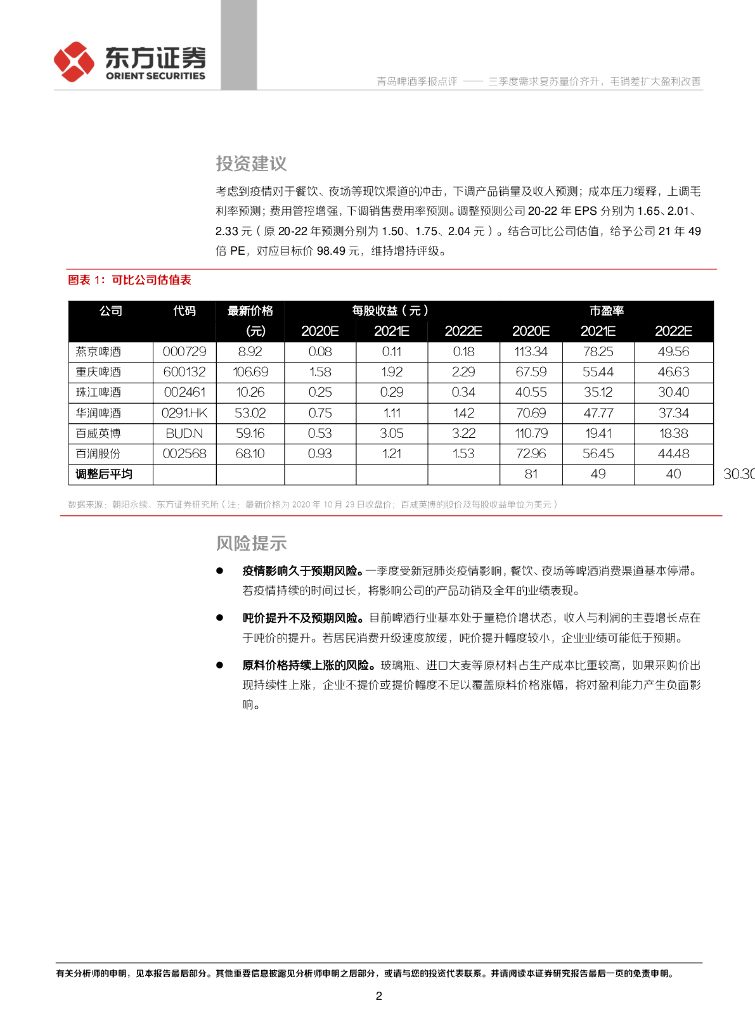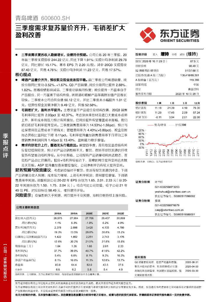 东方证券:青岛啤酒(600600)-三季度需求复苏量价齐升,毛销差扩大盈利改善.pdf