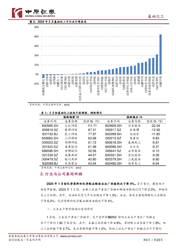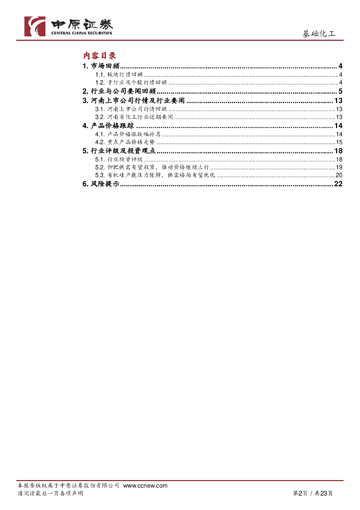 中原证券:基础化工行业月报:化工品价格整体回落,关注景气回升的钾肥和供需格局好转的有机硅行业.pdf