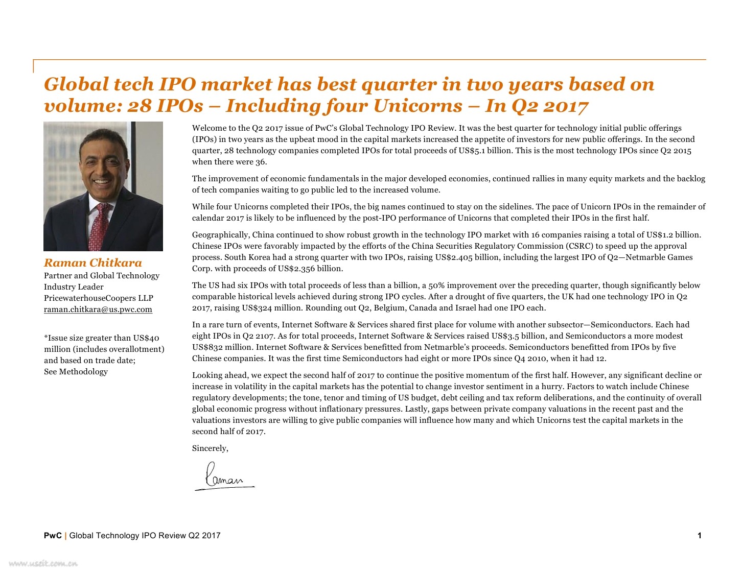 普华永道:2017年(第二季度)全球科技行业IPO回顾(英文版).pdf