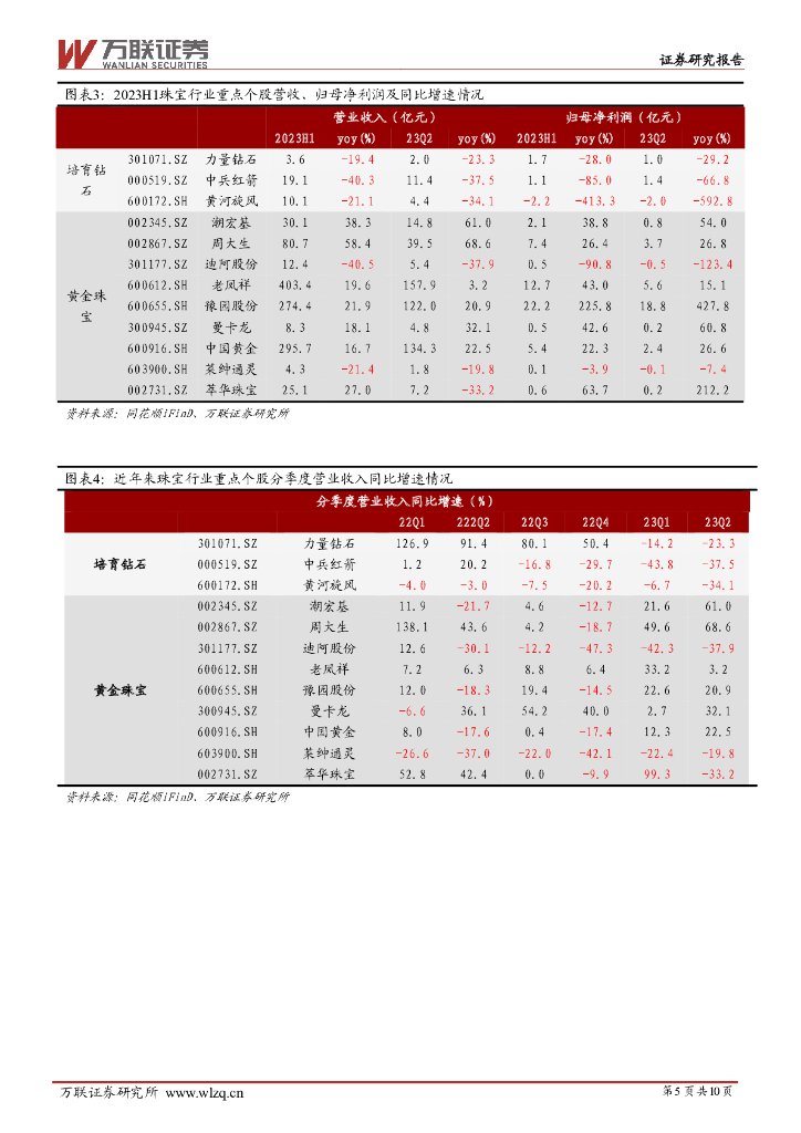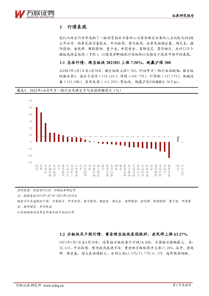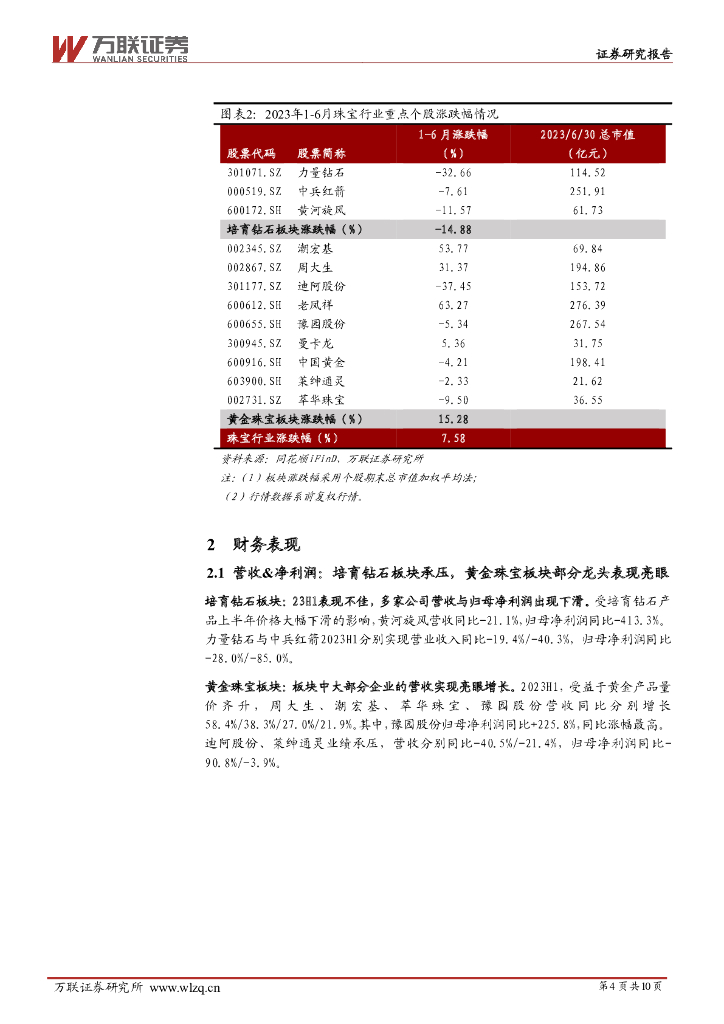 万联证券:珠宝行业2023年中报业绩综述:培育钻石板块业绩承压,黄金珠宝板块表现较好.pdf