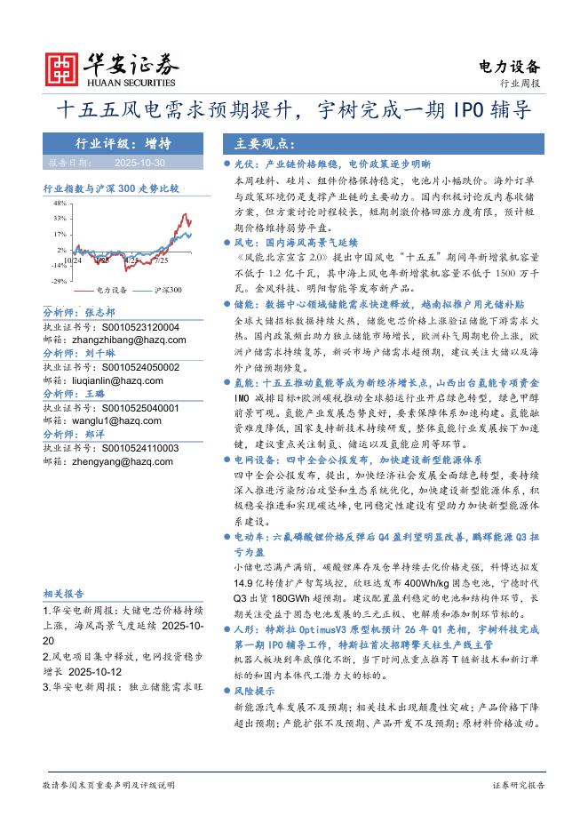 华安证券:电力设备行业周报:十五五风电需求预期提升,宇树完成一期IPO辅导.pdf