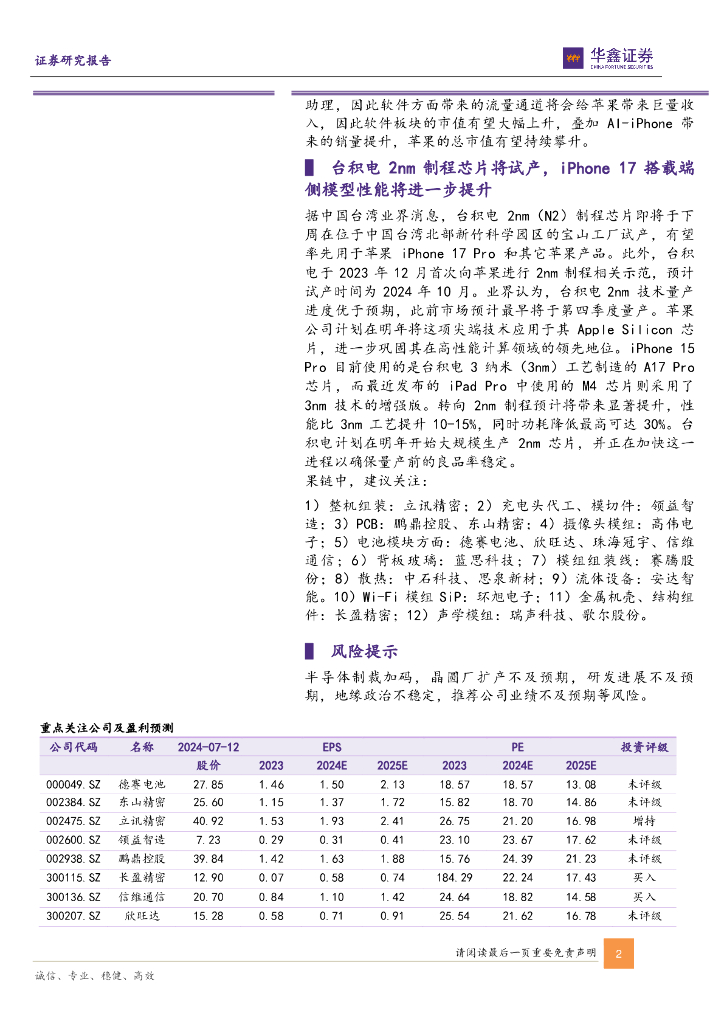 华鑫证券:电子行业周报:苹果市值创历史新高重回美股第一,台积电2nm制程芯片将试产.pdf