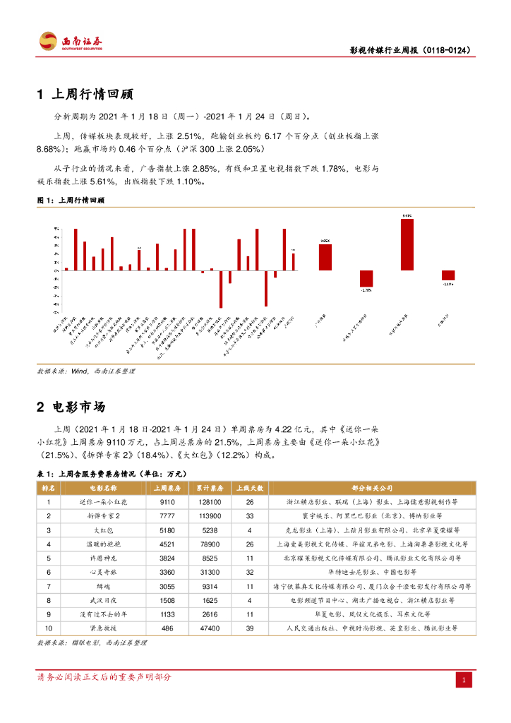 西南证券:影视传媒行业周报:《武汉日夜》好评如潮,匹克体育或明年IPO.pdf