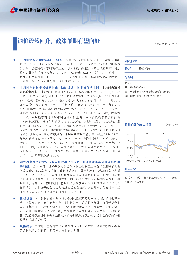 中国银河:钢铁行业:钢价震荡回升,政策预期有望向好.pdf
