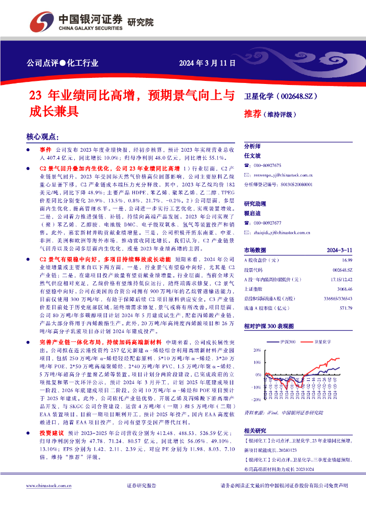 中国银河:卫星化学(002648)-23年业绩同比高增,预期景气向上与成长兼具.pdf