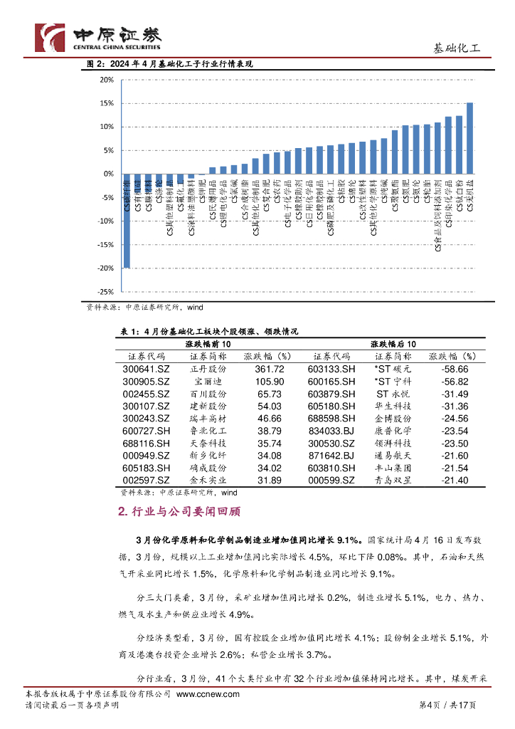 中原证券:基础化工行业月报:化工品整体延续涨势,继续关注煤化工、轻烃化工与磷化工.pdf
