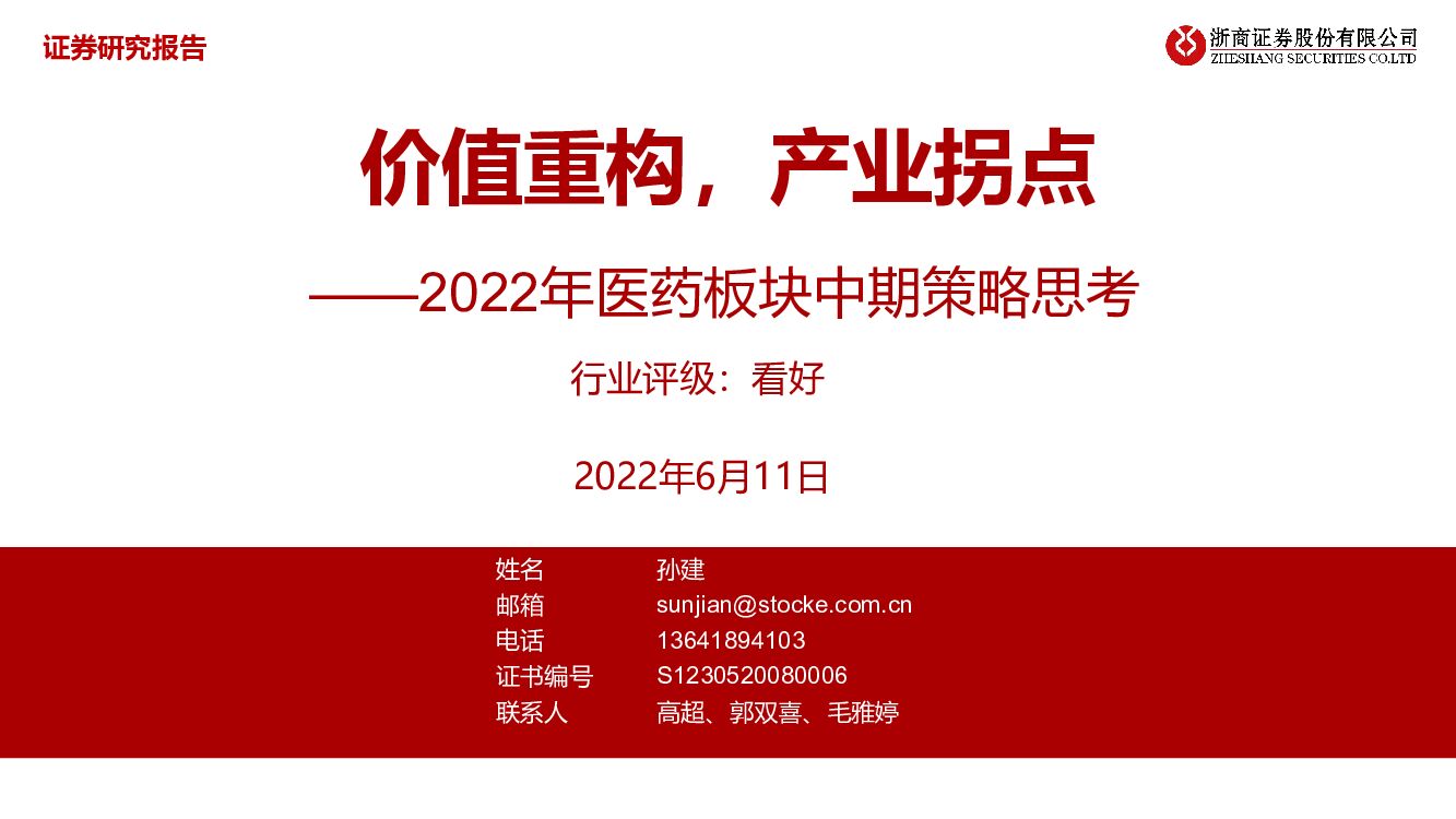 浙商证券:2022年医药板块中期策略思考:价值重构,产业拐点.pdf