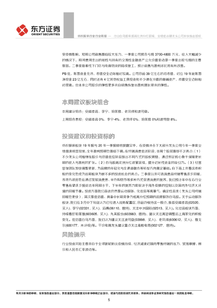 东方证券:纺织服装行业:行业白马股年报高比例分红延续,业绩低谷期龙头公司加快推出股权激励方案.pdf